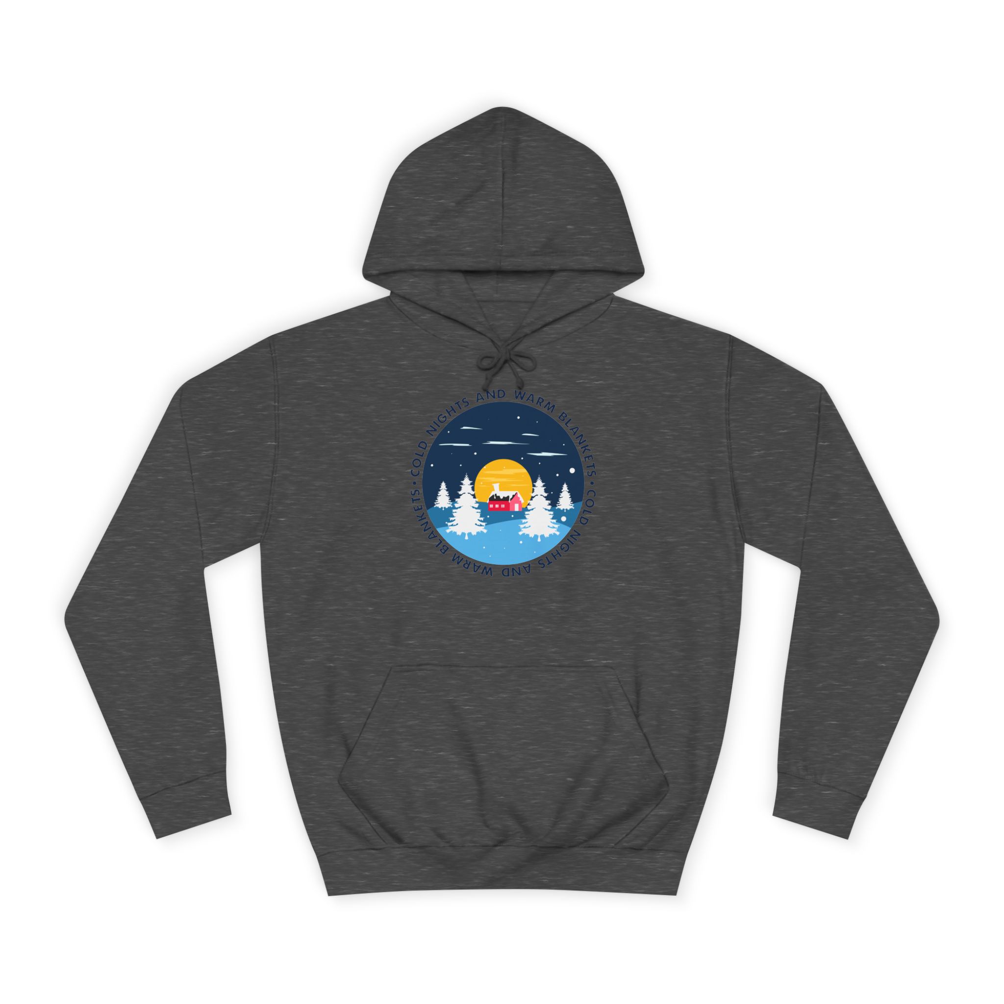 This hoodie carries a quiet, wintry calm — a small campsite tucked under a starlit sky, smoke curling up past snow-dusted pines. It feels like the breath between conversation and sleep: warm, steady, and gently protected. Slip it on after a day of trails or when you’re settling in by a small, glowing fire. The loose fit and kangaroo pocket invite you to tuck your hands in and slow down. Subtle certifications and a tear-away label mean comfort without fuss. Wear it to carry the memory of cold air, hot cocoa, and that hush that comes when the world goes snowy and soft.