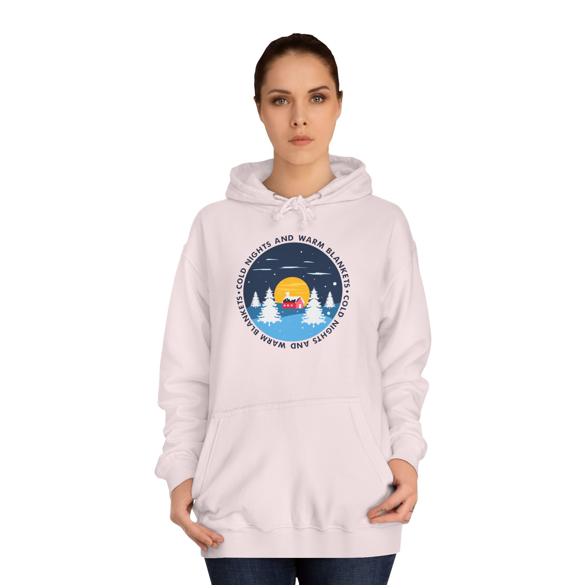 Hoodie — Cozy Winter Camping Graphic “The Mountains Are Calling”